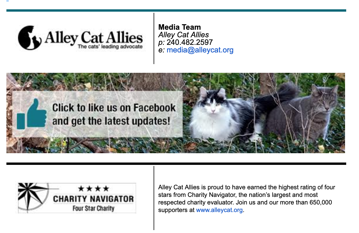 To a casual observer, Alley Cat Allies would seem to be a model charity. A Bethesda, MD-based nonprofit that calls itself “the global engine of change for cats,” Alley Cat Allies has been given a coveted Platinum seal by GuideStar, which has the “the most complete, up-to-date nonprofit data available.” For its part, Charity Navigator has bestowed a four-star rating on Alley Cat Allies, signifying that it is an “exceptional” nonprofit that “exceeds industry standards and outperforms most charities in its cause.”